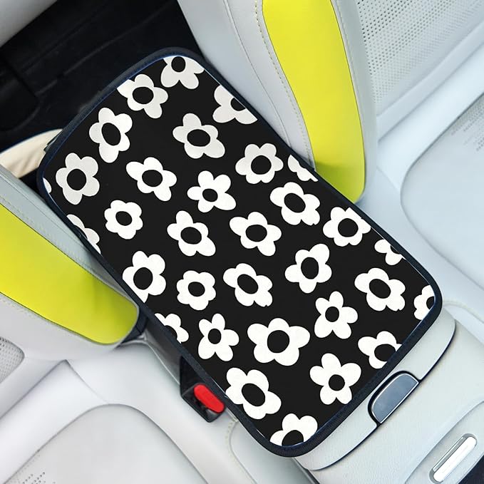 Adastrah Car Center Console Cover,White Flowers Auto Center Console Pad,Armrest Cover Protector for Vehicle SUV Truck Car