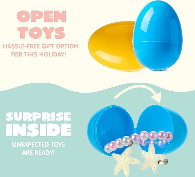 - Super Value Pack: This super value pack includes 12 colorful eggs, each filled with an adorable Beads Bracelet and Ring. It’s the perfect way to surprise little ones with fun accessories!