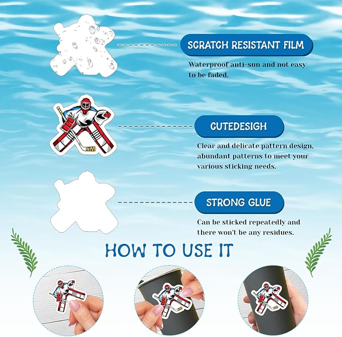 - Ice Hockey Stickers: Ice hockey stickers are printed with various ice hockey patterns, fashion and chic. Children can make cards or other gifts for friends with different ice hockey stickers, which can improve kid’s creative abilities. The ice hockey decor can be applied to laptops, backpacks, desks, suitcases, books, water cups, and more, which will surely elevate your visual experience and bring a touch of joy to everyday items