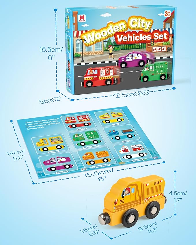 - 5. Perfect Gift for Any Occasion:Packaged in a stylish storage box, this wooden vehicle set makes an ideal gift for kids aged 3 and up. Whether for birthdays, Christmas, or any special event, this city-themed train set offers hours of fun, educational entertainment both indoors and outdoors