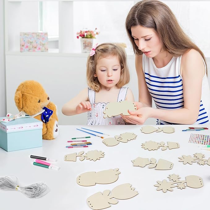 - Premium material: Our DIY flower crafts for kids are crafted from high-quality wood, ensuring each piece is thicker and more durable than standard wooden slices. Each piece is meticulously polished, featuring a smooth surface and precise cuts, making it easy to write on or paint. Alongside the included painting brushes, a box of vibrant watercolor pens allows children to explore their creativity and personalize their designs with ease.