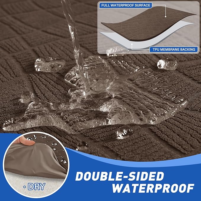 - 【DOUBLE WATERPROOF FABRIC】MAXIJIN water-resistant recliner loveseat cover is coated with waterproof layer on the top, backed with a TPU membrane, offering double protection to ensure that our covers for recliners provide excellent waterproof and leak-proof functions. This newest waterproof feature protects your recliner from any splashes, liquid spills and daily wear and tear, thereby extending its lifespan