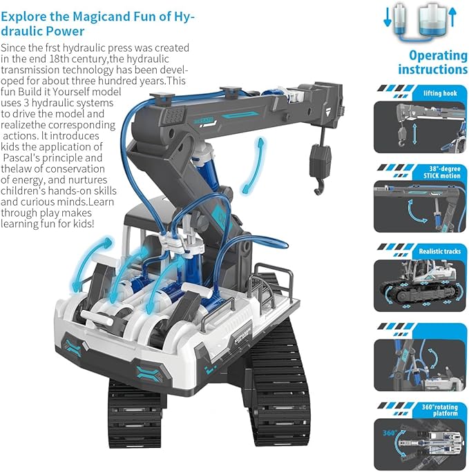 - Engage your child's STEM skills with this hydraulic power crane toy, perfect for building and assembly. Suitable for children aged 8, 9, 10, 11, and 12 years old.
