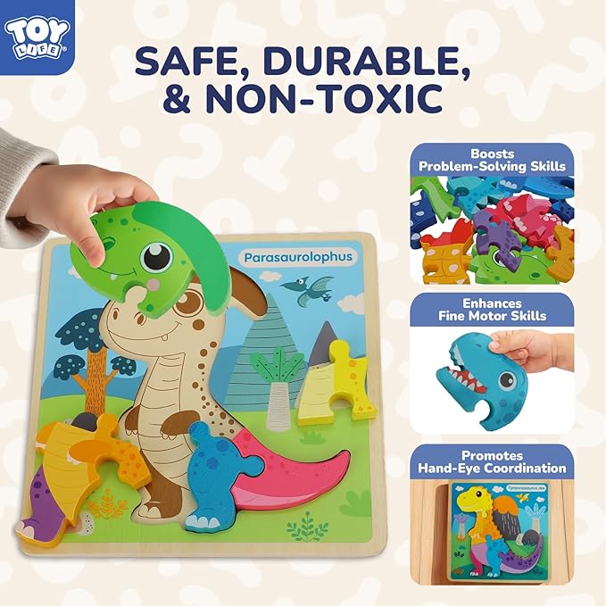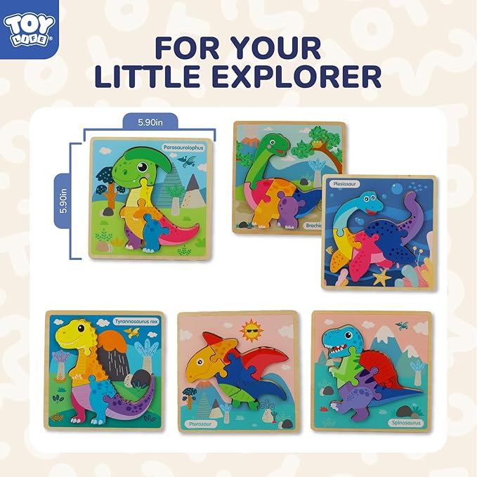 TOY Life Wooden Puzzles for Toddlers 2-4, 6 Pack Dinosaurs Puzzles for Kids Toddler 1-3, Montessori Toys for 1 2 3 Year Old, Educational Toys for Boys Girls Age 2 3 4 5, Baby Learning Toy Gifts