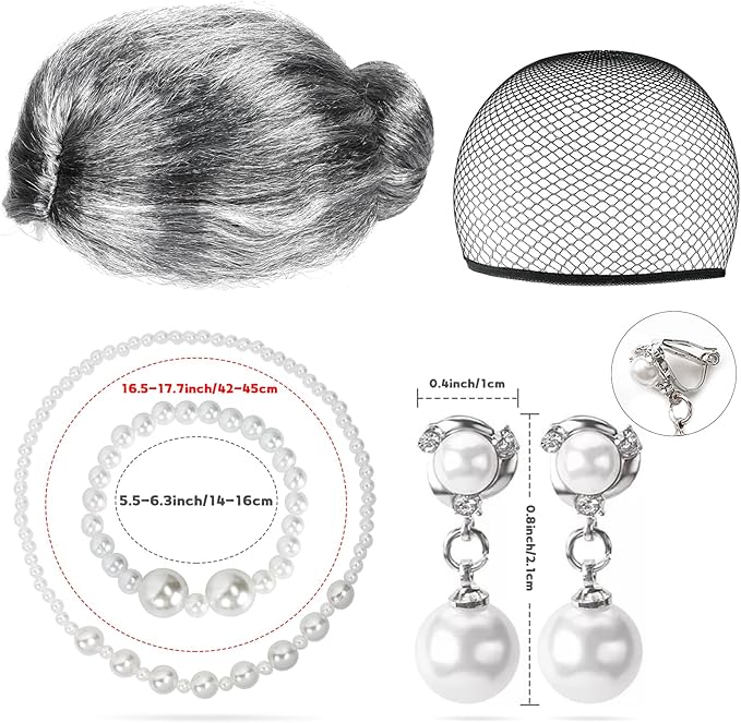 • Easy to Put On and Remove: This old lady costume set is easy to wear,allowing your child to get dressed up in minutes. All accessories are designed to be kid-friendly, with clip-on earrings and a simple necklace clasp for convenience