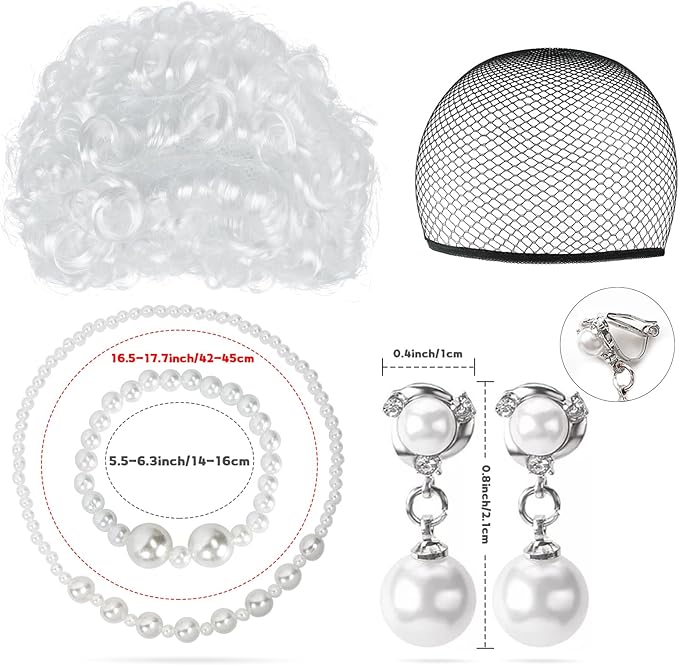 - Easy to Put On and Remove: This old lady costume set is easy to wear,allowing your child to get dressed up in minutes. All accessories are designed to be kid-friendly, with clip-on earrings and a simple necklace clasp for convenience