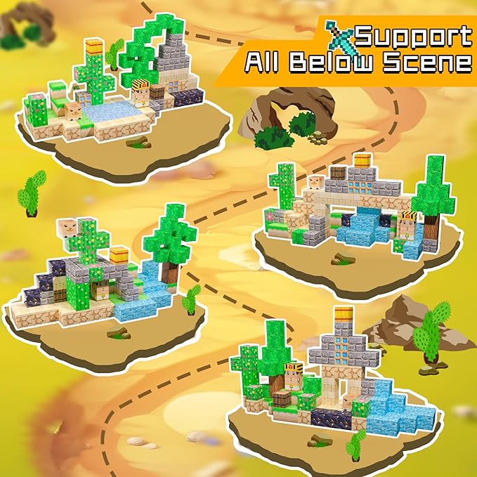 - 【100% COMPATIBLE】 New desert world theme magentic blocks building set, 100% compatible with mainstream magnetic building cubes in market. Get this new adventure pack to add to your existed building collection, expanding your magic world exploration map.