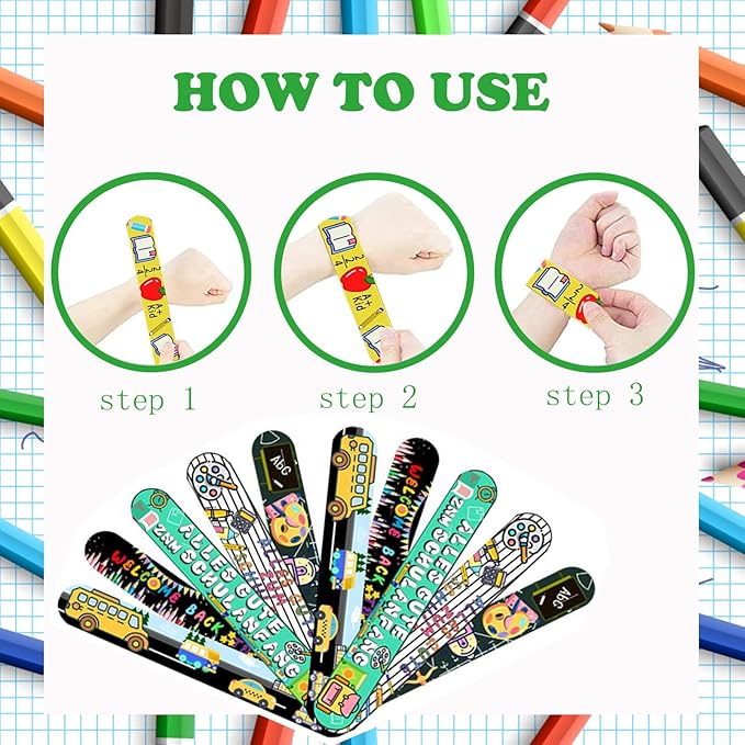 - 【Safe Material】The flapping bracelet is made of flexible core and smooth PVC, which is sturdy and durable. The exterior is tightly wrapped with soft artificial leather type materials. The print is clear and the edges are sealed.Perfect for teachers to give as rewards to kids in the classroom.