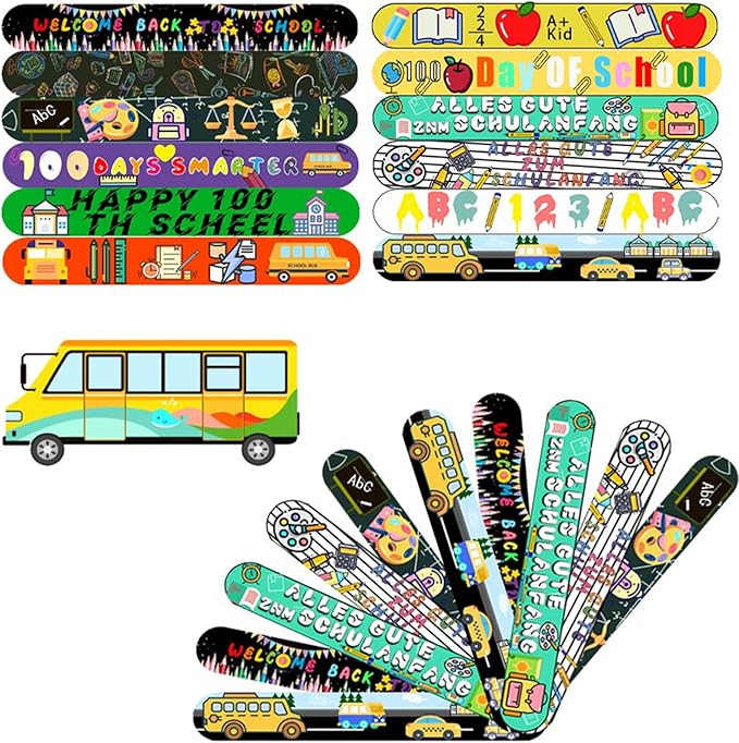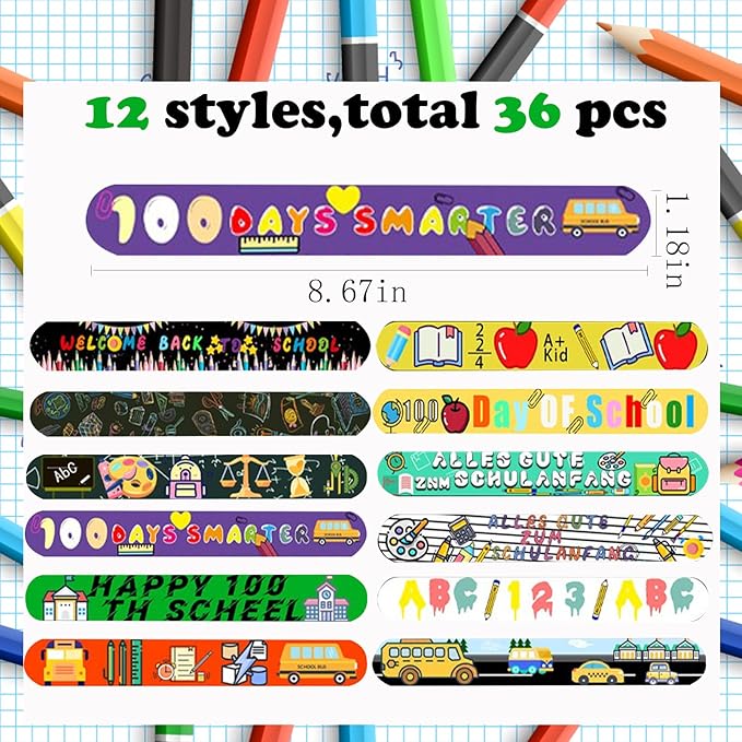 100 Days of School Slap Bracelets, 36 Pcs Slap Bracelets for Kids 100th Day of School Party Favors Decorations Snap Bracelets Wristbands Supplies for Kids Gifts Classroom School Favors