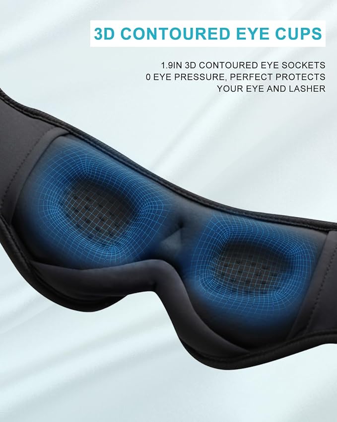 - 【Upgraded 3D Contour Design & No Eye Pressure】- Our sleep mask with bluetooth headphones based on ergonomics. Our eyes can move freely with the 3D contoured bluetooth sleep mask. With no pressure on eyes, the bluetooth eye mask can bring you a comfortable and long-lasting sleep.The bluetooth sleep eye mask is the perfect Sleeping Headphones for side sleepers, choose sleeping bluetooth headphones, fall asleep fast, stay asleep and have a sweet dream