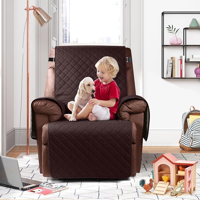 KinCam 100% Waterproof Recliner Chair Cover, Reclining Couch Covers for Pets, Dogs, Recliner Couch Slipcover Furniture Protector with Elastic Straps for Kids(30", Coffee)