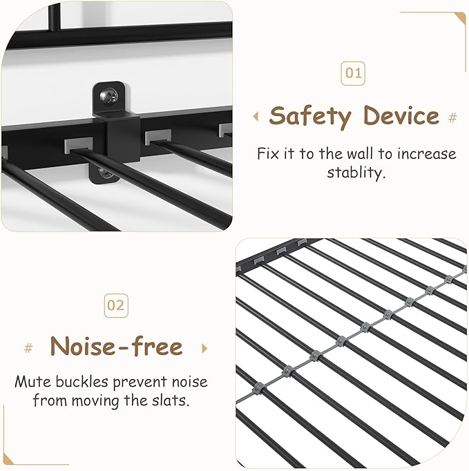 - 【Robust and Stable】With its sturdy metal frame construction and extra ANTI-TIPPING accessories, this bunk bed is very strong and stable and prevents excessive shaking. And the plastic buckle design can fasten the slats firmly to prevent the noise from moving slats.