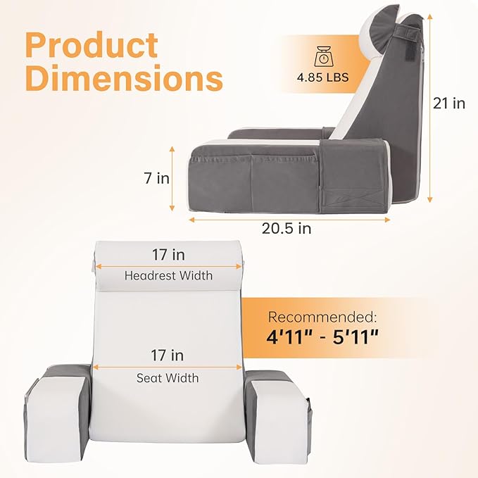 - Professional 60° Wedge Backrest: The unique 60° backrest is engineered to fit the natural curve of your body, helping reduce pressure and fully relax your back. The ergonomic angle allows you to stay comfortably focused for long reading or TV sessions, while encouraging a healthier sitting posture