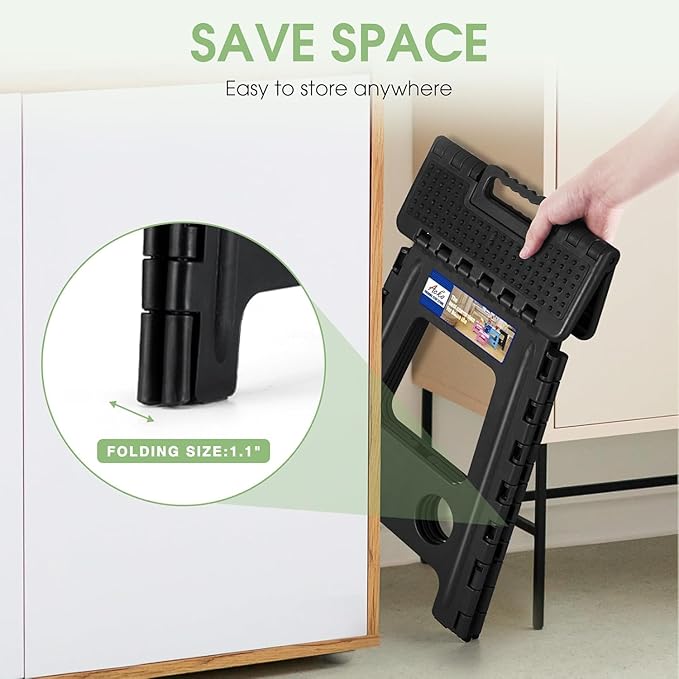 - 【Versatile and Multipurpose】Folding stool is suitable for a wide range scene, from indoors to outdoors, high enough for most reaching without a step ladder,catering to various needs comfortably,great for kitchen,closet,office,garden,RV,camping,fishing or anywhere else you might need a little extra height.
