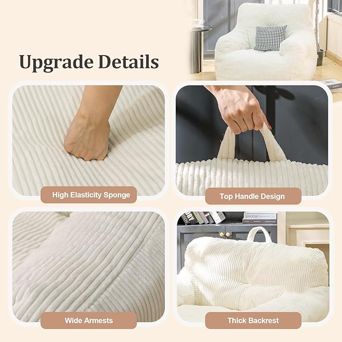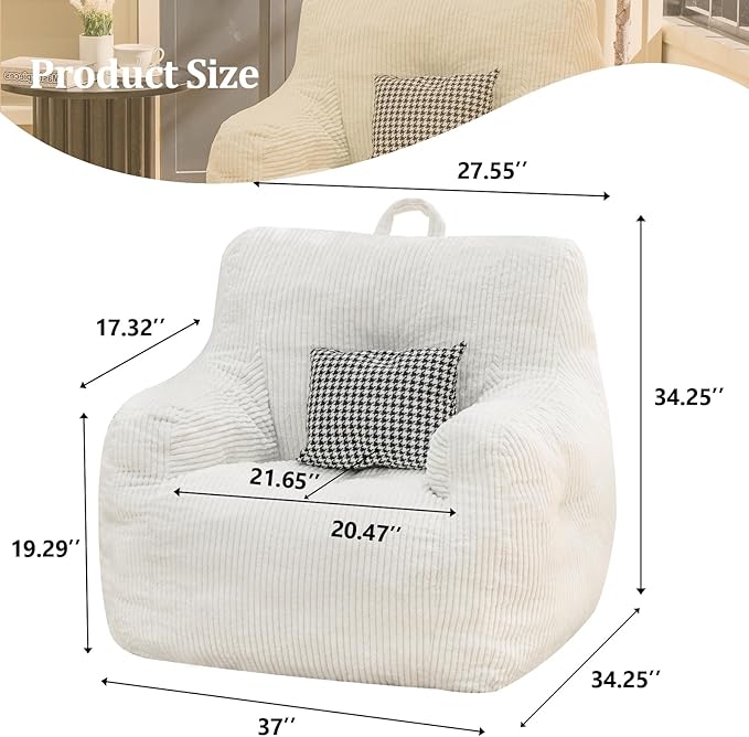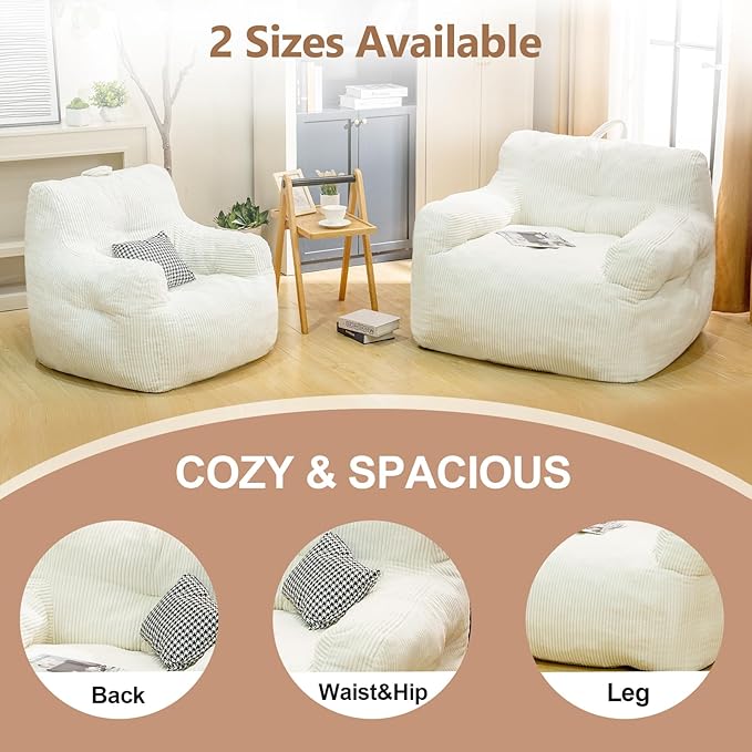 - No Assembly: This bean bag chair is pre-filled, you do not need to fill it yourself. t is shipped compressed and needs to be cut open and packaged, tapped and shaken to promote rebound, and waited about 24 hours to return to its original shape. If you have any questions, please to contact us at any time, we will be at your service 24 hours a day!