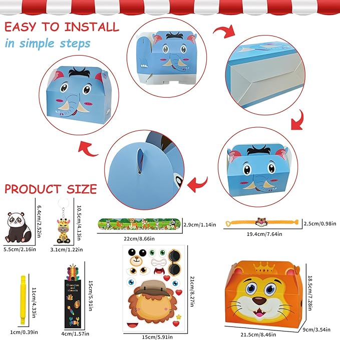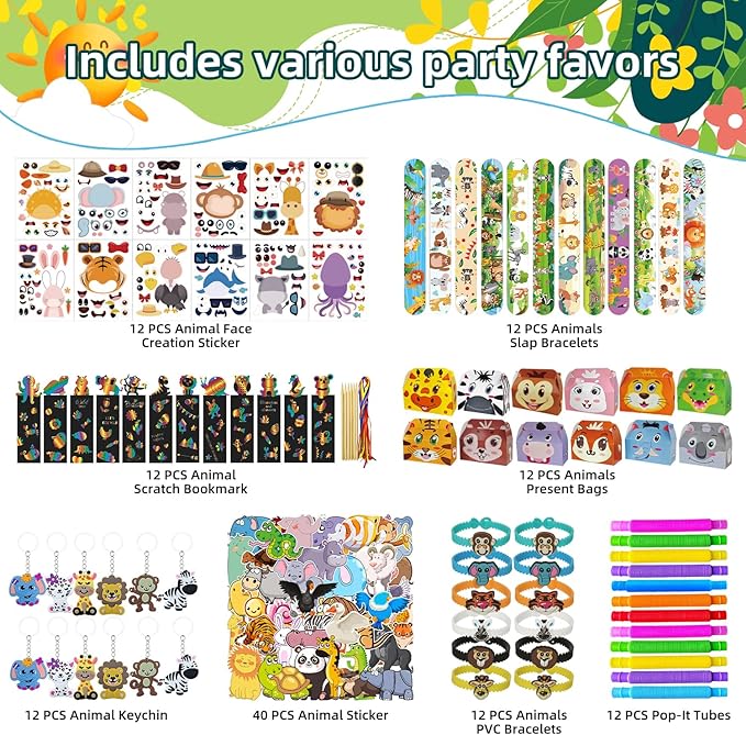 - A Complete Safari Party in a Box:Turn any event into a wild Animal theme party with our comprehensive set.12 PCS Animal Keychains are adorable keepsakes for kids. From Trinkets to entertainment, this set contains a variety of different items that are key to a successful animal themed celebration