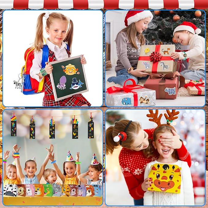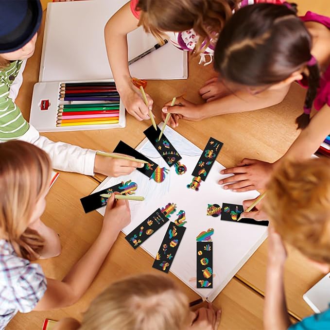 - Versatile and Engaging for All Occasions:Whether it's an indoor playdate, an outdoor picnic, or a festive holiday party, our 124 PCS set has got you covered. The 12 PCS Animal Scratch Bookmark to Spice Up Study Time, while the 12 PCS Animals Present Bags are perfect for gifting small treats. These items work great as goodie bags stuffers for kids and can also be used as prize box toys for kids classroom. They bring excitement and entertainment to any setting, from the living room to the schoolyard