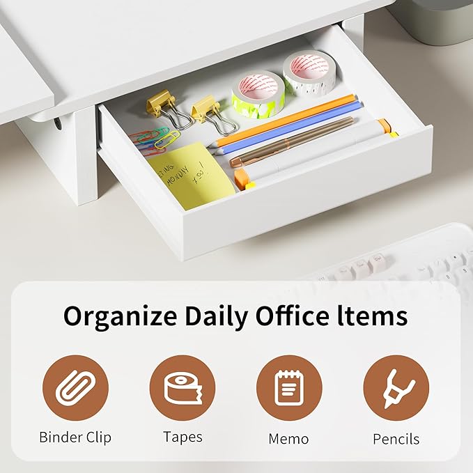 - Adjustable Angles: Adjustable angles accommodate various desk sizes and monitor setups, while featuring a drawer for storing desktop items, creating a personalized workspace.
