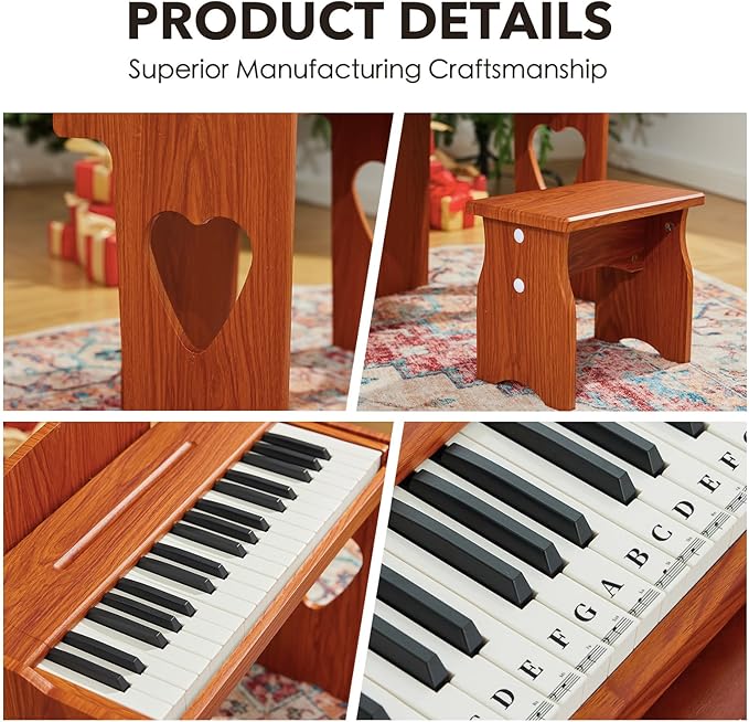 • 【STURDY FRIENDLY DESIGN】 This children piano is made of wood materials, comes with a non-tipping bench for easy and comfortable use. High-quality materials and superior structure make it exceptionally sturdy and durable.
