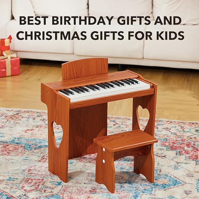 Kids Piano Keyboard, 37 Keys Digital Piano for Children, Toddler Music Educational Instrument Toy Wood Piano for 2+ Girls and Boys (brown)