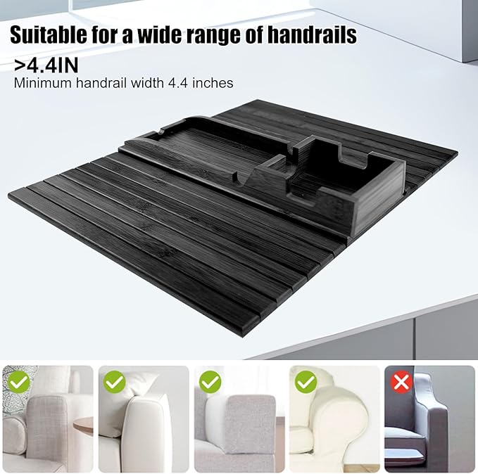 - Universal Fit for All Sofa Types: Detachable Sofa Armrest Tray crafted from premium natural bamboo, adapts effortlessly to a wide range of couches, including those with broad, flat, curved, or straight armrests. Its universal design fits armrests from 4.5” to 14” in width, ensuring compatibility with diverse furniture styles. Immerse yourself in the convenience of a tray that seamlessly integrates into your living space, enhancing both functionality and aesthetics.