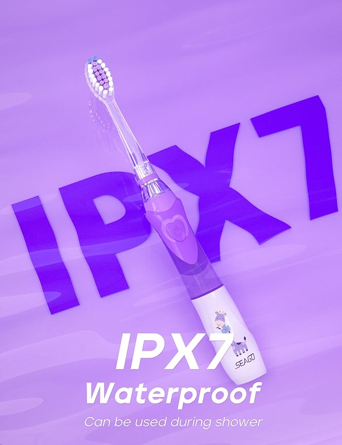 - Safe Materials and Timer: The SEAGO kids' sonic toothbrush handles are made of food-grade ABS and TPE, and the toothbrush heads feature soft bristles to safeguard children's tooth enamel. This kids' toothbrush includes a timer to help children achieve the dentist-recommended brushing duration