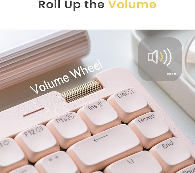 - Built-in Adjustable Kickstand and Roller Volume: We're still your go-to travel companion. The built-in stand showcases Lofree’s commitment to simplicity - no extra accessories to worry about losing. Blend practicality with fun, the added aluminum volume wheel is simpler and more intuitive to use