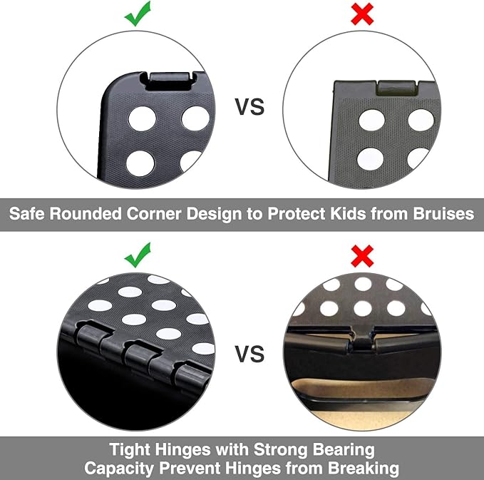 ACSTEP Folding Step Stool with Back Support for Kids,9" Kids Step Stool for Outdoor or Indoor Kitchen Step Stools and Bathroom Stool for Toddlers Boys Girls - Black, 10 Pack