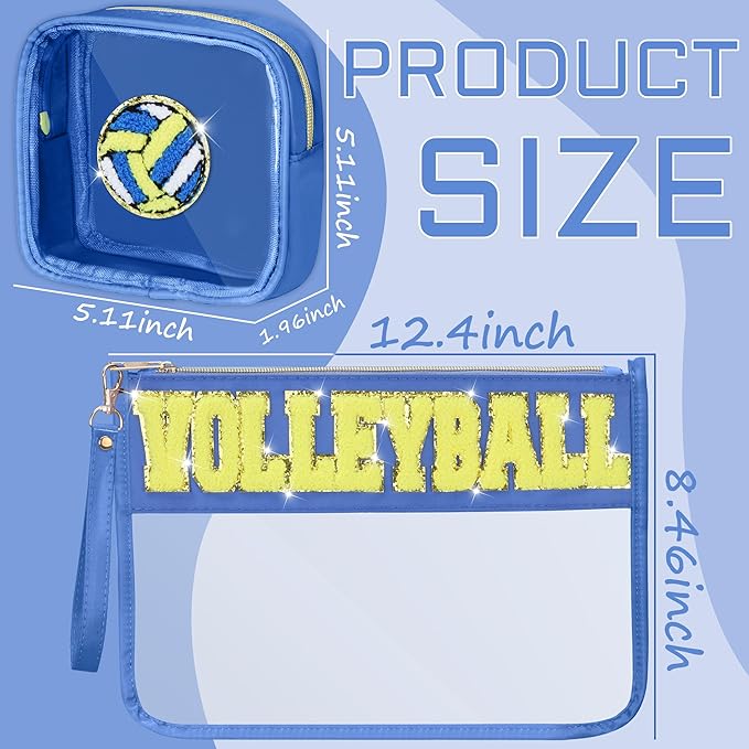- Compact Design: This volleyball accessory set features a clear PVC cosmetic pouch and a zippered, chenille-patched bag for organized storage.