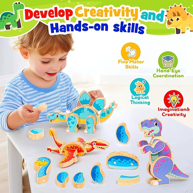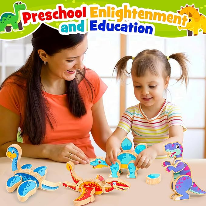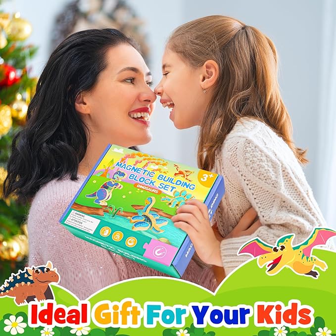 - Dinosaur Toys for Kids 3-5:Delight your kids with this magnetic wooden dinosaur building blocks toys set,designed for boys and girls aged 3-5. Vibrant colors and fun designs to spark their imagination,featuring colorful magnetic pieces that easily connect, kids can build and rebuild their favorite dinosaurs or create unique new creatures.