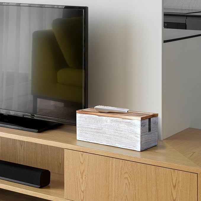 - Natural Wood Material: Our wire box organizer cord box hider is crafted from long-lasting pine wood, ensuring that it can withstand daily use for years to come. The smooth surface of the wood makes it easy to clean and maintain with just a quick wipe-down using a damp cloth.