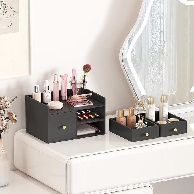 - Storage and Versatility:Dimensions: 12.2" x 8.66" x 7.09"LWH). This desktop organizer features multiple drawers to help organize office supplies, documents, stationery, and other desk essentials, keeping your workspace clutter-free and efficient. It’s ideal for use in the office, study, dresser, bathroom, or countertop.