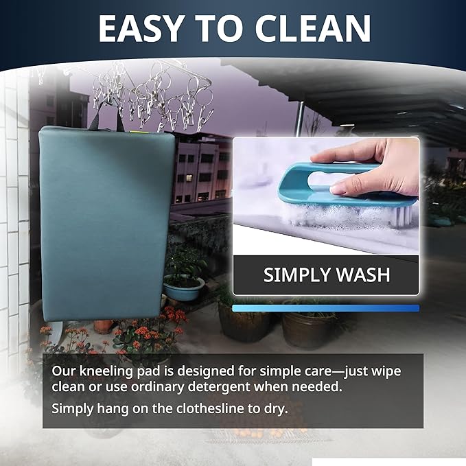 - π§½πΎπ€π£π«ππ£πππ£π© π©π€ πΎπ‘πππ£: The inner layer of garden knee pad is made of water-resistant diving clothing fabric, so it can be applicable to various scenarios, such as grassland, bathroom, stone floor. You can easily clean it with water and detergent. It can be hung on a pole to dry easily.