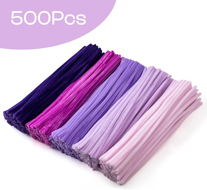 Caydo 500 Pieces Purple Pipe Cleaners, Chenille Stems, Pipe Cleaner Crafts for DIY Art and Craft Projects Creative Gift Party Decorations