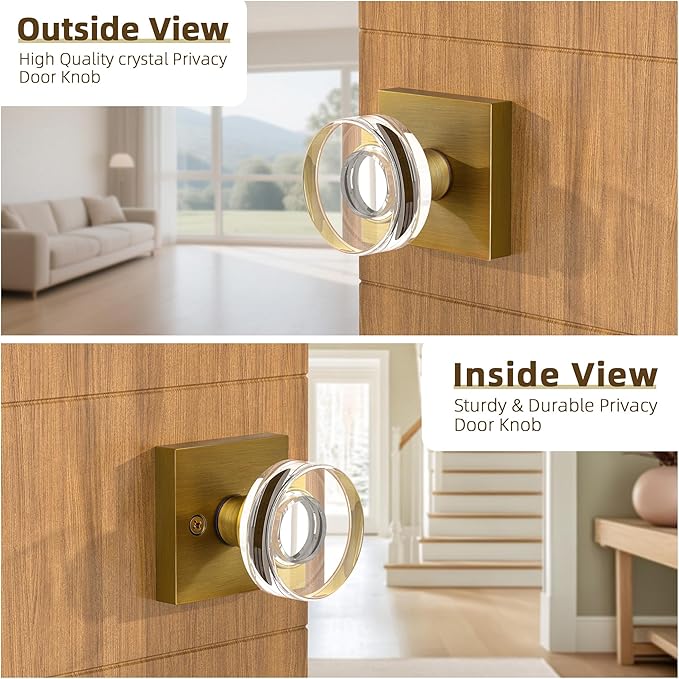 - 【Beautiful Crystal Door Knob】The satin brass door knob is a clear round crystal shape, with a square plate of zinc alloy, heavy duty and durable for last using. These high quality interior door knobs come in antique brass finish and look great. You will love it