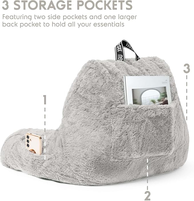- Bonus Pockets: Featuring 3 convenient pockets, this bedrest pillow helps you create a cozy nest without needing to get up once you're settled in. The 2 small side pockets are perfect for storing your remote or phone, while the larger back pocket is ideal for magazines, books, or a tablet.