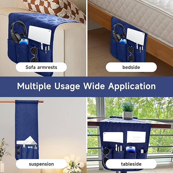 - ❤[Function] - Excellent storage space, the armchair caddy for couch has 6 pockets with different sizes. The big pocket can be separated to two medium pockets by magic sticker. This armrest remote control holder can neatly store your phone, remote controller, power adaptor and others