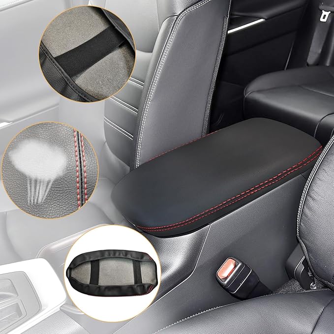 SUNBREATH Compatible with Center Console Armrest Cover for Toyota RAV4 2019 2020 2021 2022 2023 2024 Leather Arm Rest Storage Box Lids Cushion Protector Pad