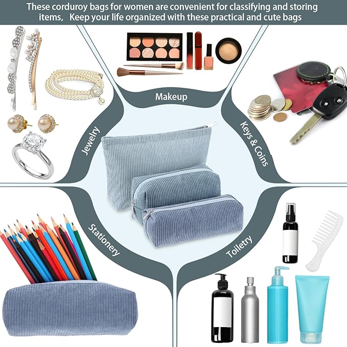 - Dimensions to Suit Your Needs: coming in 3 different sizes, about 10 x 2.4 x 6.7 inches/ 25 x 6 x 17 cm, about 6.3 x 2.8 x 3.5 inches/ 16 x 7 x 9 cm, and about 7.5 x 2.4 x 2.4 inches/ 19 x 6 x 6 cm, these corduroy bags for women are convenient for classifying and storing items; Keep your life organized with these practical and cute bags