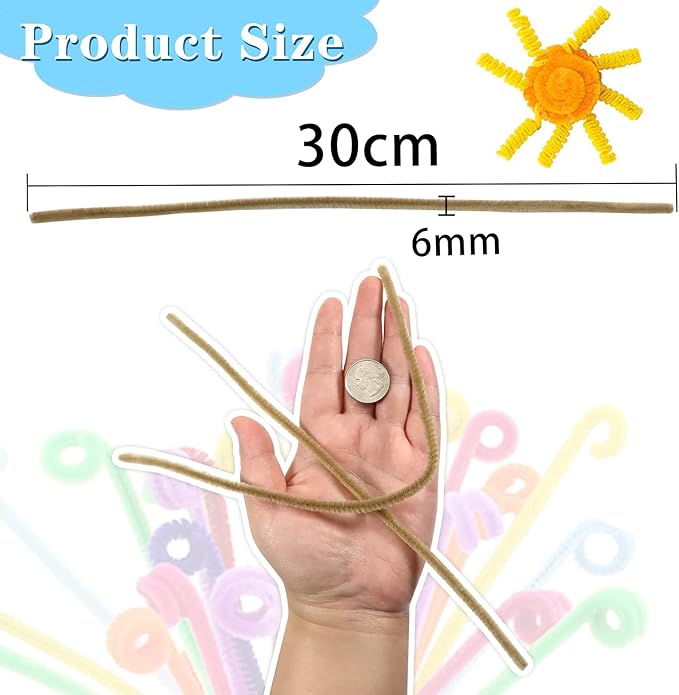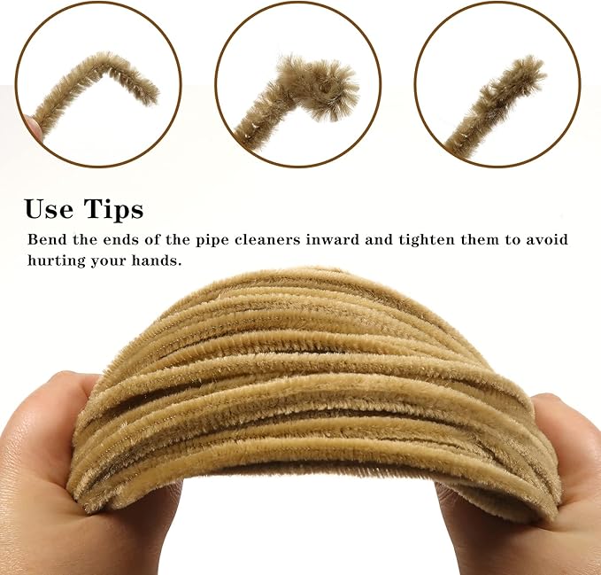 - Size and Colors: Light brown pipe cleaners, 0.24 X12 inch (6 mm x 300 mm); Enough quantity to meet your various needs of DIY craft creations, which is suitable for handmade making