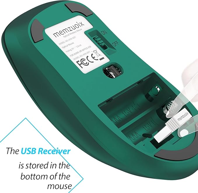 memzuoix 2.4G Wireless Mouse, 1400 DPI Computer Mice USB Receiver, Portable Wireless USB Mouse Battery Powered Cordless Mice for Laptop, PC, Desktop, 5 Buttons (Dark Green)