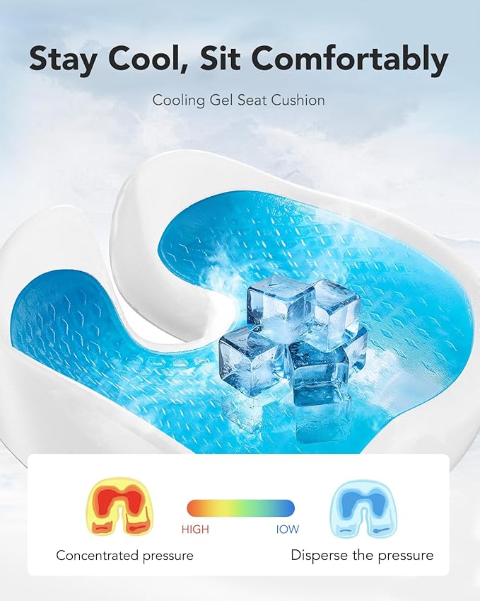 - Cooling Gel for Added Freshness: With the inclusion of cooling gel, this seat cushion keeps you comfortable and cool during long sitting periods. The gel works to regulate temperature, ensuring the cushion stays fresh and dry, even on warmer days. Whether you're at work or in your car, this seat cushion for car offers a cool, relaxing experience.