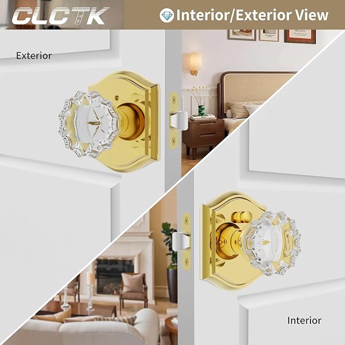 - 【Application】The crystal door knobs can be locked using the thumb button function from inside, and be unlocked from the outside with Allen key in emergency. Ideal for bathroom/bedroom
