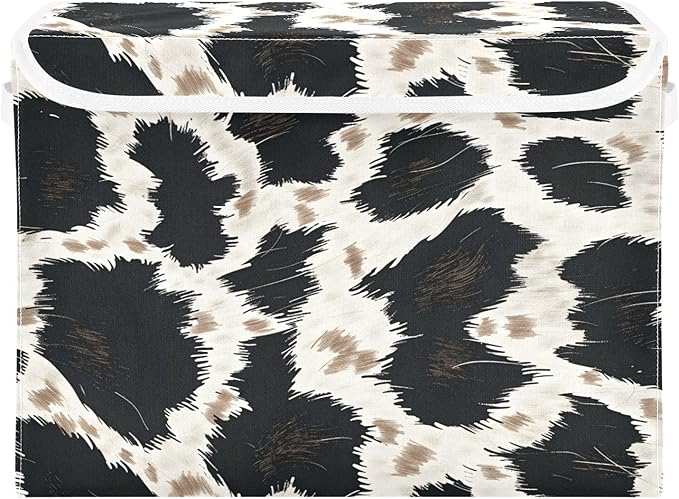 senya Large Storage Bins with Linen Collapsible Foldable Storage Cubes Fabric Closet Organizer Containers box with Flip-Top Lid for Home Bedroom Office 16.7 x 12.6 x 11.8in (Animal Skin Texture)