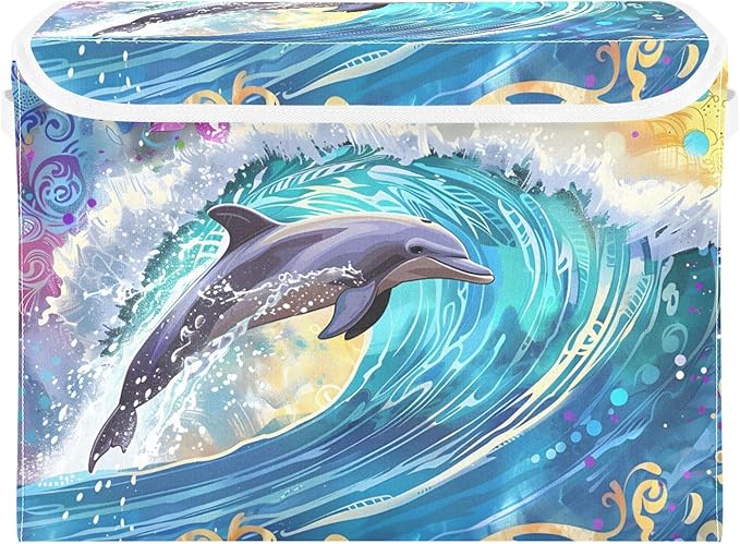 senya Large Storage Bins with Linen Collapsible Foldable Storage Cubes Fabric Closet Organizer Containers box with Flip-Top Lid for Home Bedroom Office 16.7 x 12.6 x 11.8in (Dolphin)