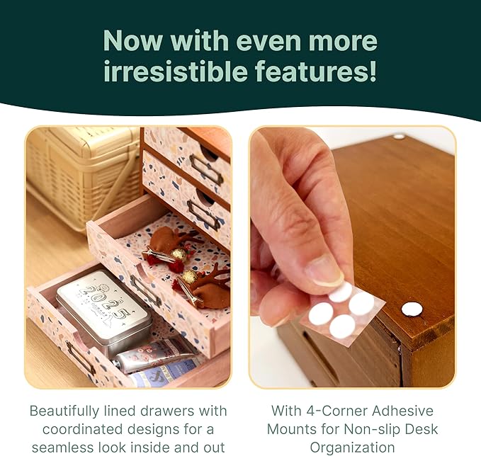 - Add a touch of modern charm with terrazzo pattern: Elevate your workspace or home decor with this unique 4-drawer organizer featuring a trendy terrazzo pattern. The multicolored chips on the drawer fronts add a fun, modern touch while blending with rustic wooden craftsmanship.