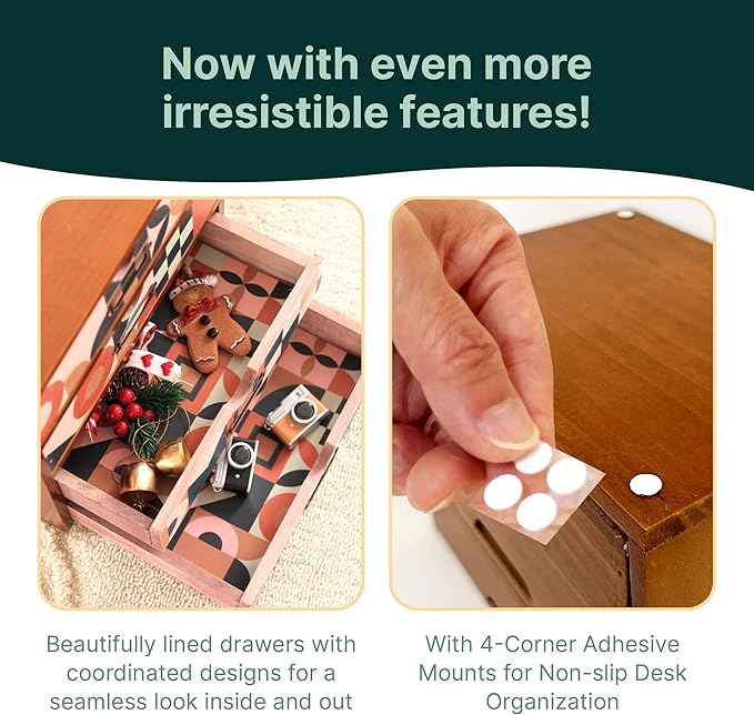 - Elegant interiors & non-slip stability: Each drawer features a cohesive geometric design inside for a polished look. Non-slip adhesive mounts keep the organizer securely in place, ensuring both practicality and aesthetic appeal for your workspace or home.