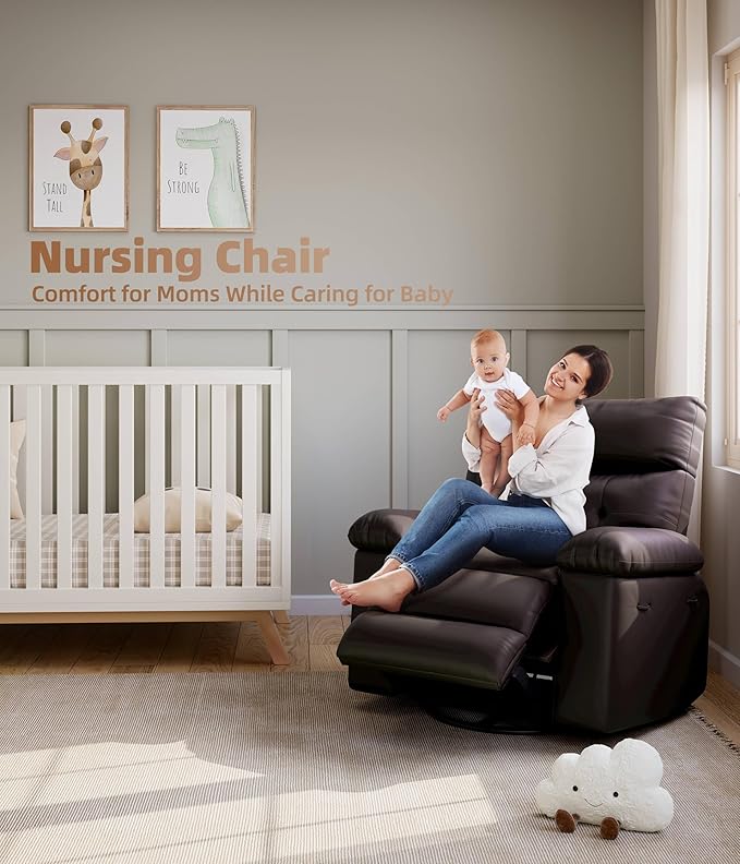 Electric Recliner Chair - 360° Rocker Swivel Recliner with Heat and Massage, PU Leather Large Recliner for Adults, Comfortable Lazy Chair with 1.5X Sponge Filling for Living Room