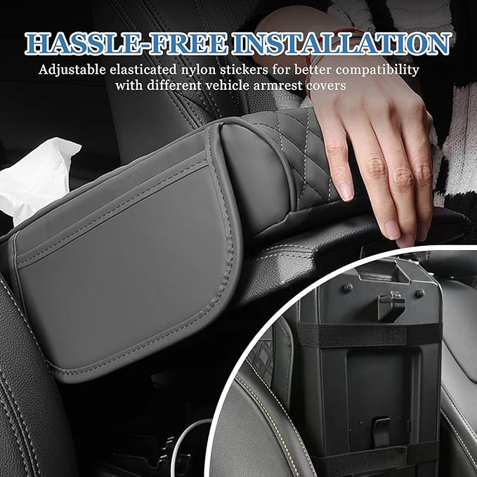 - 【Hassle-free Installation】: Designed with elasticized nylon stickers, the installation of this armrest pad combines the benefits of both ease and stability. You can quickly fix it to the armrest lid, and the adjustable elasticized nylon stickers provide better compatibility for different vehicles' armrest lids.