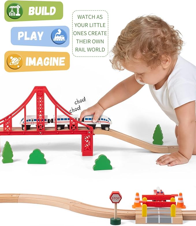 - Compatible with Leading Brands - Play perfectly wooden Train Track accessories with all Popular brands,Perfect for other toy train sets.children are free to expand railway tracks to continuously explore new possibilities by connecting with other train set you already have.
